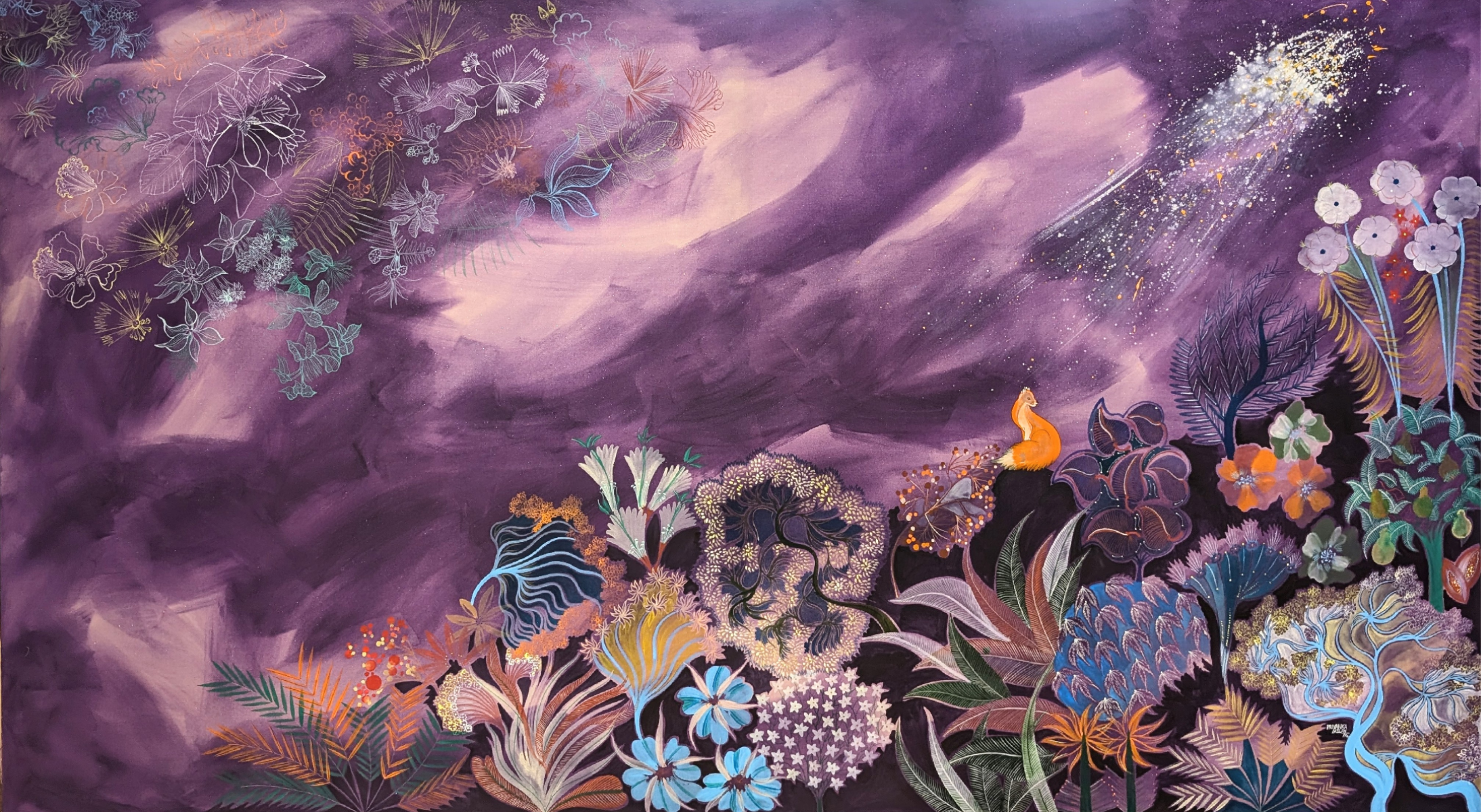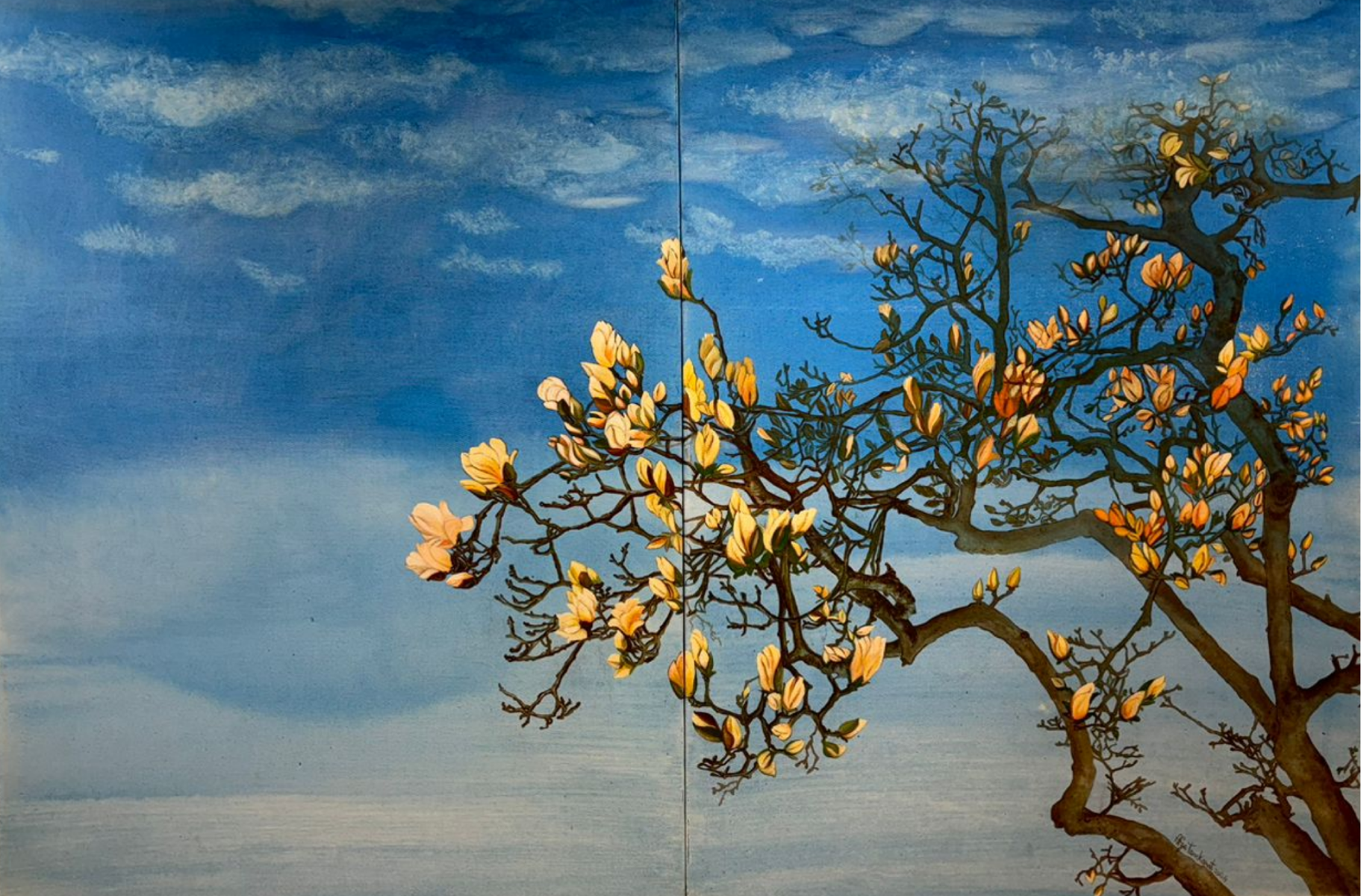 Similarly, both Sabitha Lakshmanan and Uma Vegasina who love nature as much as their own lives, have depicted lungs in humans and nature around them, to emphasize that trees and nature are the lungs of the earth, and these in turn give humans fresh air that their lungs can revel in. In a telling canvas, Uma depicts herself in a floral shirt where she allows herself to inhale the freshest and purest form of oxygen. There is no future for us or our children unless we respect nature that predates us, Sabita says, and her drawings are a celebration of the memory of the time spent in nature. “The time I spend in painting is a way of deeply connecting with the shared environment…the trees, the flowers, the berries, the fruits, their fragrances in the air and the remembered calls of the birds, the bulbuls and the magpies...” she says wistfully.