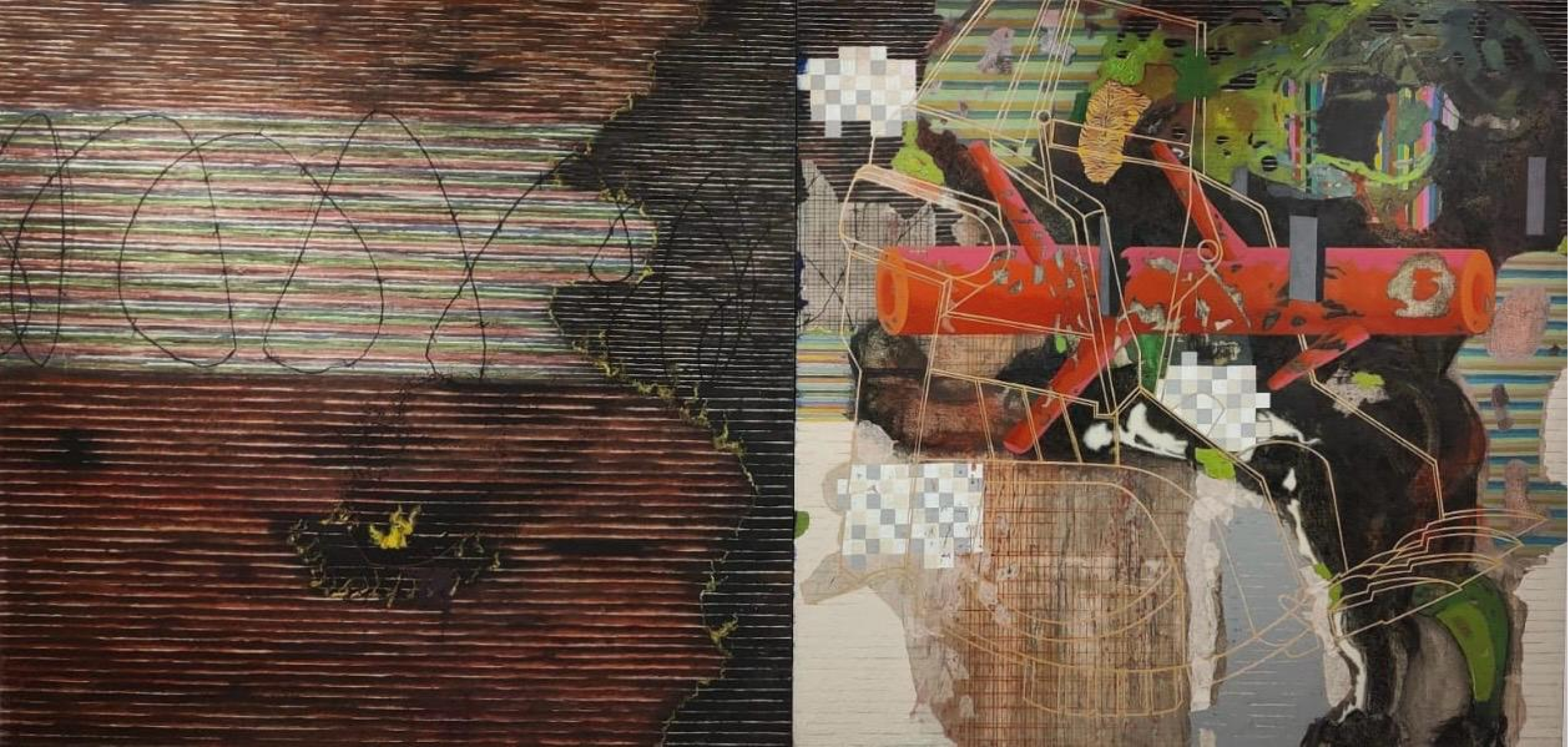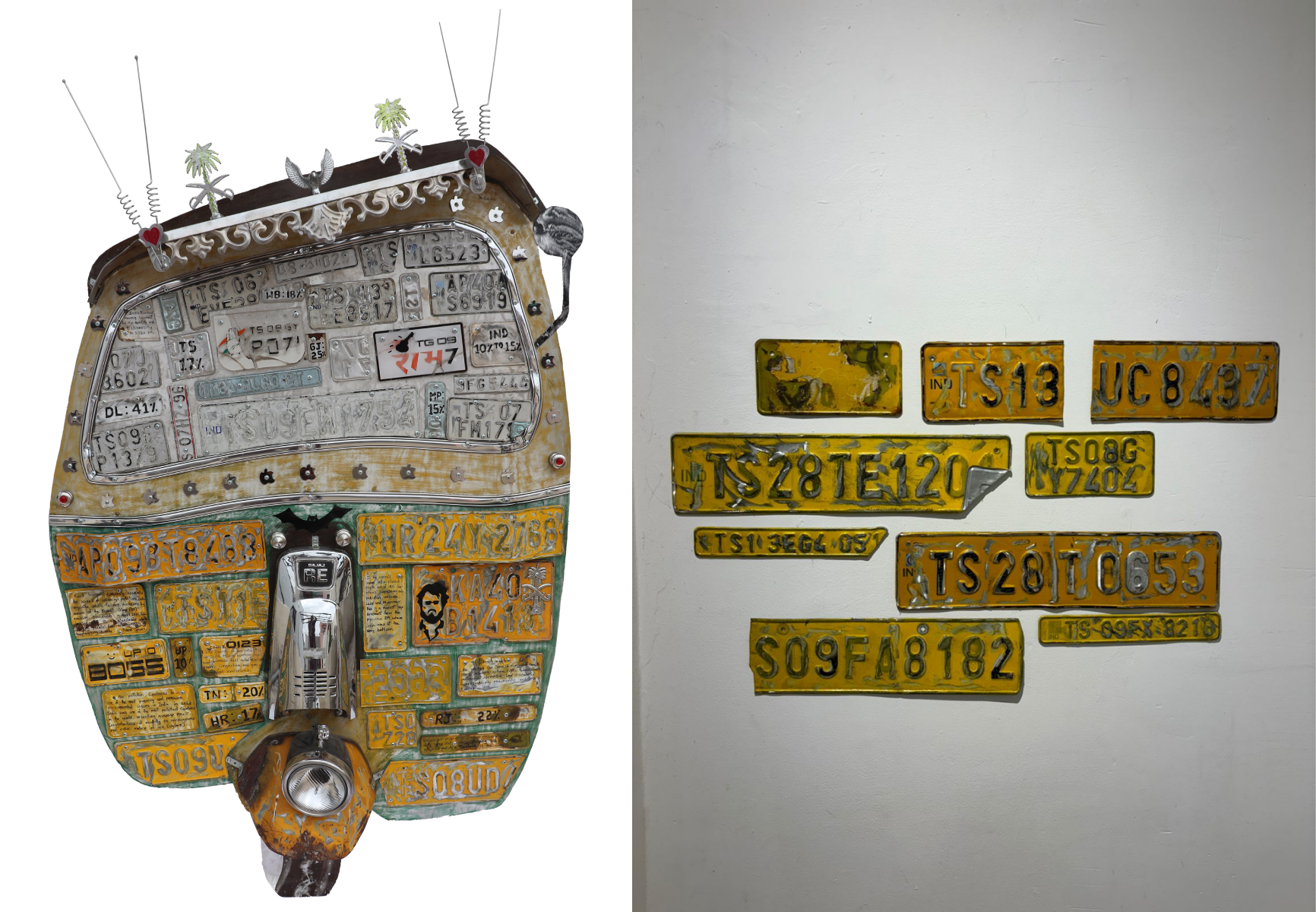 While technology and its benefits are inevitable, the waste we generate by discarding old electronic gadgets, cars and batteries is so colossal that there are literally graveyards of old tyres and laptops that no one knows what to do, or cares to do anything about. With obsolescence being high with electronics things are no longer recycled as it was done even a generation ago. Artist Murali Thrigulla who usually paints vintage cars, here has a truck that looks as if it is heading to bomb Ukraine, but is maybe only a vehicle that was repurposed consciously for a different use.